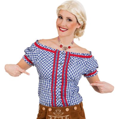 Chemisier Oktoberfest tyrolien à carreaux bleu et blanc