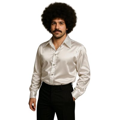 Satijnen disco hemd met sierknopen - Wit